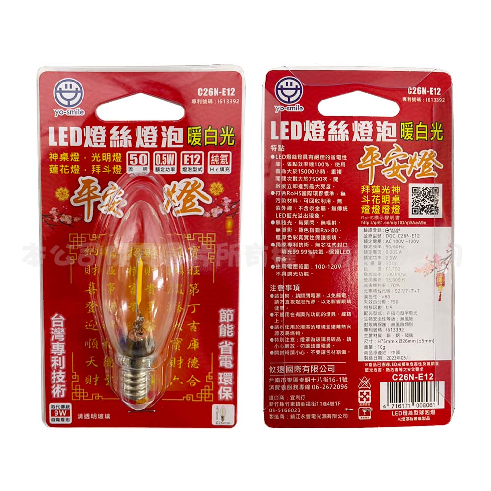 C23R-E12-2 LED燈絲燈泡2入-紅光
