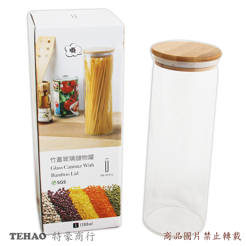 DS0731L竹蓋玻璃儲物罐1230ML X