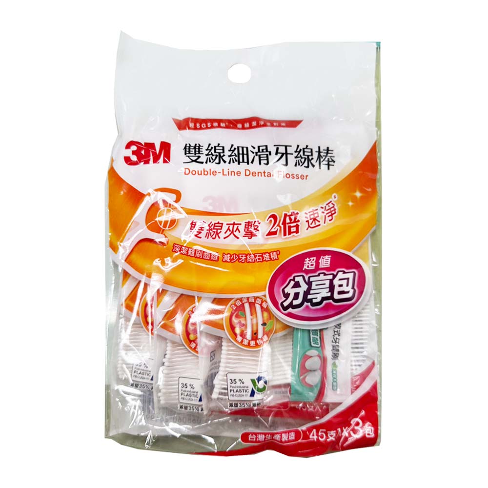3M雙線細滑牙線棒(45入*3包)